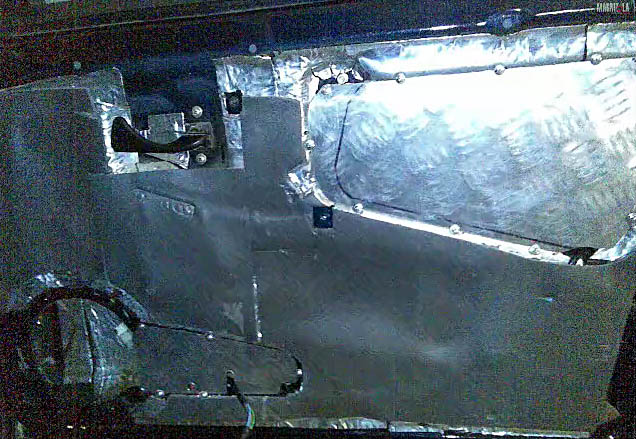 Вот, например, на фото видно, что все прекрасно уложено, прорезана шумка, уложены кабеля, как в желобок, но я знаю случаи, когда в этих местах провода были перетерты. Поэтому береженного Бог бережет.