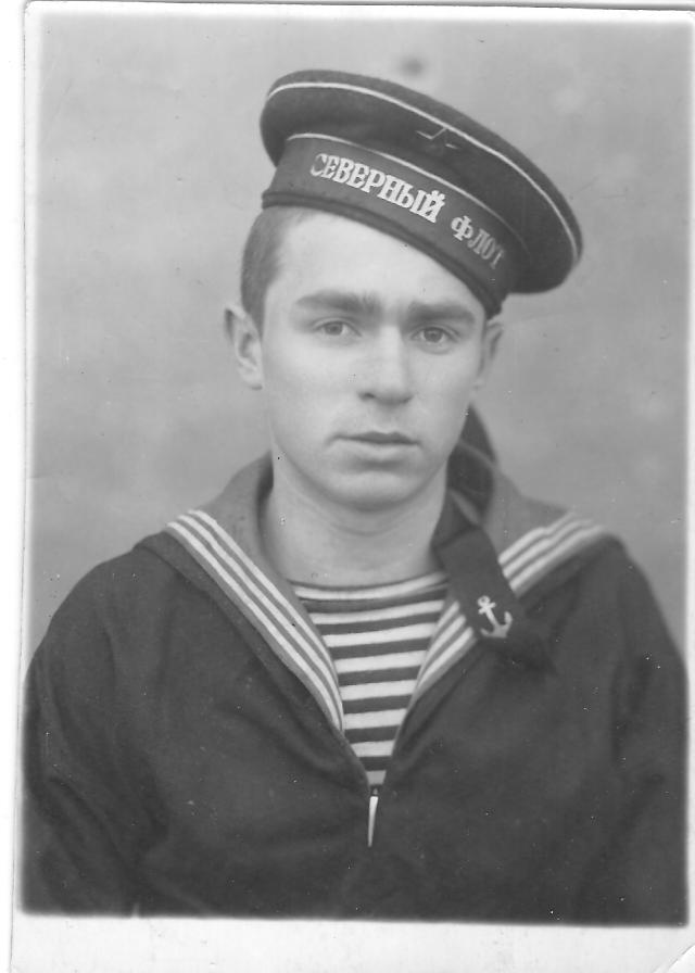 В мае 48-го заканчиваю третий курс. Зимой в военкомате прошел приписку. «Здоровье в порядке, спасибо зарядке!» И определили меня на флот. Северный, т.к. в те годы Московская область шефствовала над ним. Сказали только, чтобы я поднабрал вес. А рост у меня уже был нормальный ‑ почти 170 см. Худющий был.