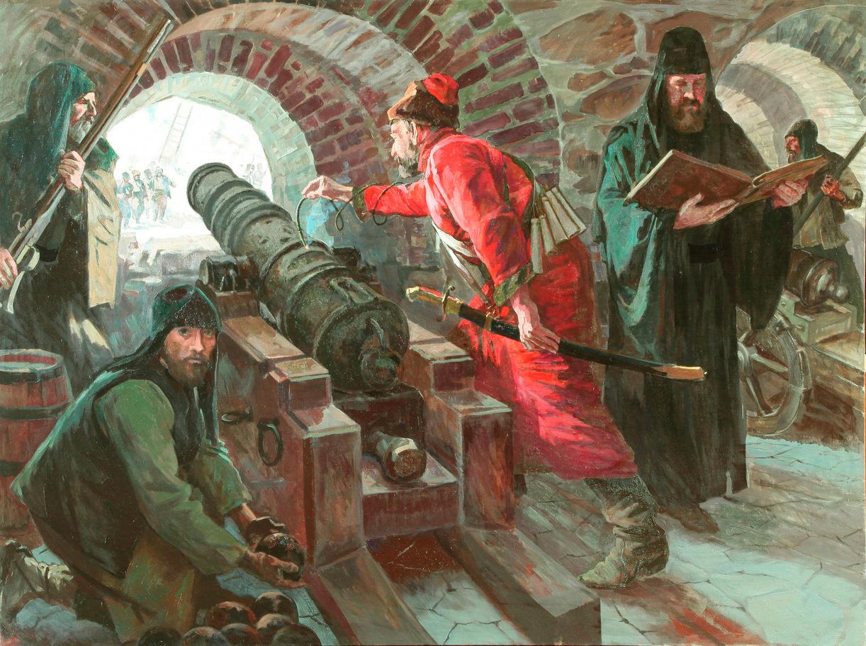 –Не кручинься о пушкарском наряде, княже, – архимандрит, глядя снизу вверх, положил руку на плечо Долгорукову, – то нашей братии забота. И Нифонт со своим полком, хоть и осталось от него чуть более сотни, посильным помощником тебе будет. Соборные старцы урядили защиту. Назначили, кому биться на стенах или в вылазках. Никого не забыли. Коли стар человек али немощен – все ж силы у него хватит на ляшские головы камень сбросить, врага кипучим варом обдать. Кого поранят, за тем жены и дети ходить будут… Все в святой обители на свое дело пригодятся…