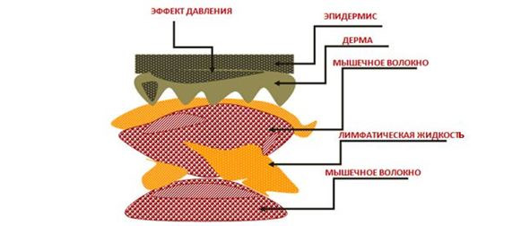 Рисунок 9. Схематическое изображение противоотечного действия кинезиотейпа