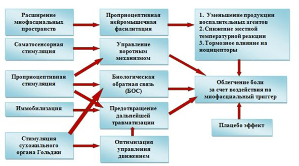 Рисунок 10. Механизм воздействия кинезиотейпинга на миофасциальную боль