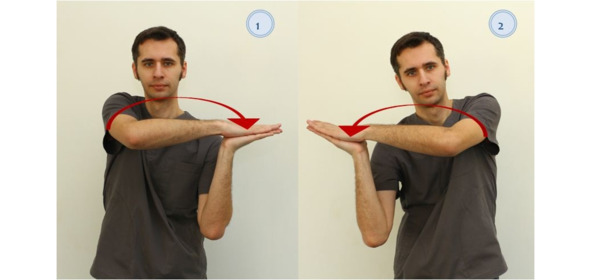 Рисунок 14. Упражнение лечебной физкультуры: исходное положение «стоя» или «сидя» с вытянутой вперед рукой – выполняем круговые вращения в плечевом суставе и в кисти поочередно по часовой стрелке и против по 5 раз в каждом направлении. Выполняем поочередно для левой и правой руки.