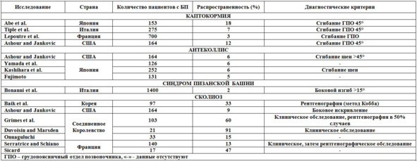 Таб. 7. Исследования распространенности постуральных деформаций у пациентов с паркинсонизмом.