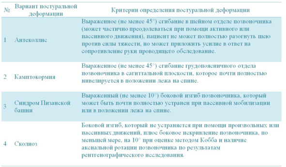 Таб. 8. Критерии определения варианта постуральной деформации.