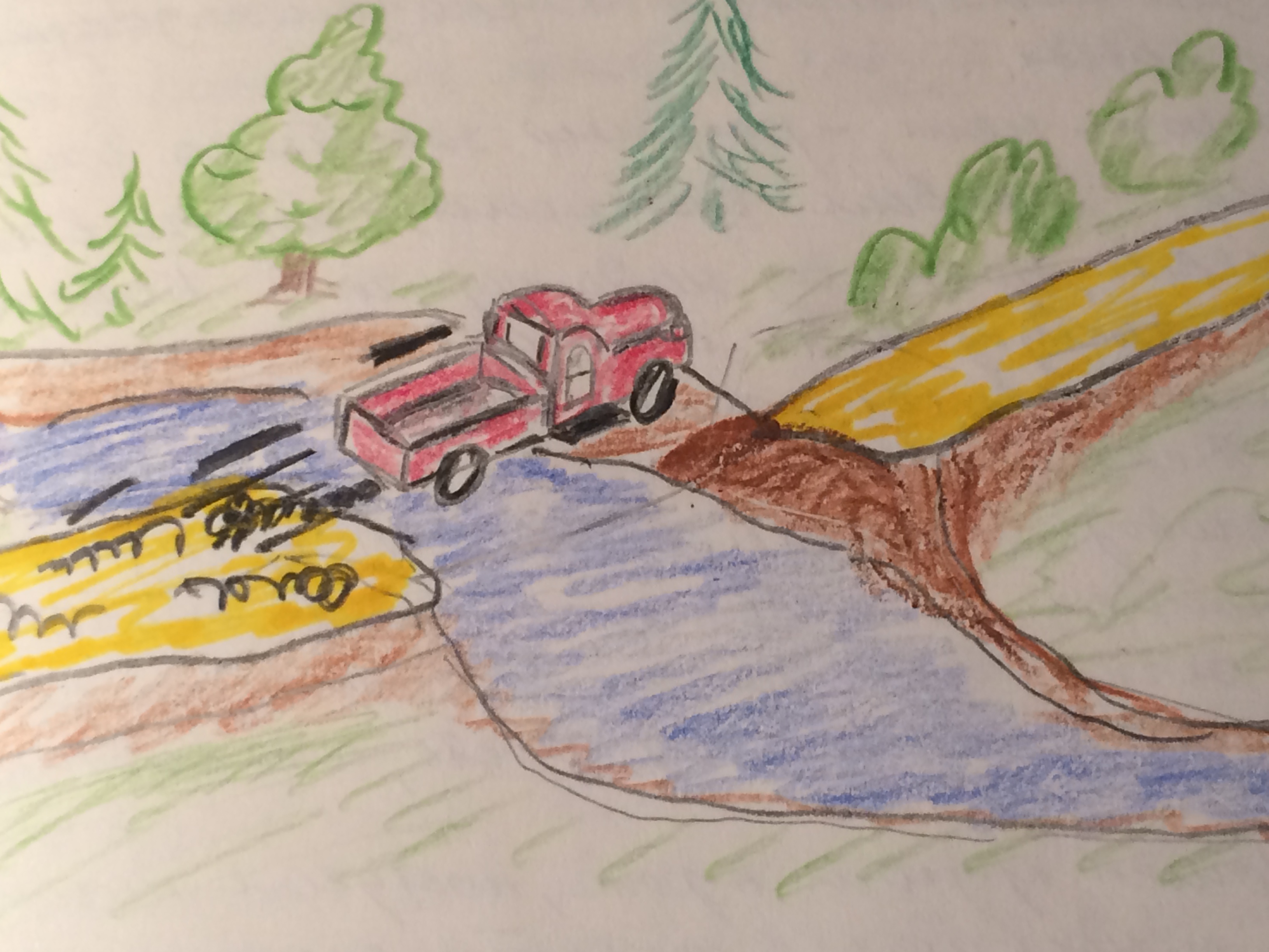 Настоящее бездорожье началось, когда свернули на просеку. То, что считали дорогой Амуниция и ее хозяин Охотник Жека, для тяжелого Трака стало настоящим испытанием: склизкая после дождя глина заставляла грузовичок двигаться больше вправо- влево, чем вперед. Вот так.