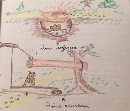 На первом заседании штаба, где, разумеется, присутствовали и Котыч с Барбоской, решили провести разведку окрестностей, наметить места, где установить ловушки и капканы. Ловушки – это закрытые хворостом ямы с колокольцами, а вот капканы решили пока не устанавливать, чтоб не прибить зверюшку или незадачливого охотника из других краев.