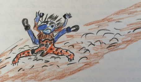 Затем началось совсем неожиданное: Синяя Огурца начала судорожно шарить по своей хламиде в поисках карманов, которых у нее отродясь не было. Возможно, она искала яблочко или даже конфету. Одновременно она делала выпады костистой пятерней в сторону Сеньки. Наконец, совсем запутавшись в своих намерениях, Бабца начала высоко подпрыгивать. Гиена, не получая никаких команд, растерянно ерзала вокруг расшалившейся Огурцы, и в один прекрасный момент Огурца, возвращаясь на землю после затяжного прыжка, со всего размаху приземлилась на холку гиены. От неожиданности все четыре лапы у последней расползлись в стороны, как на льду, и ее нижняя челюсть с треском встретилась с каменистой тропой.