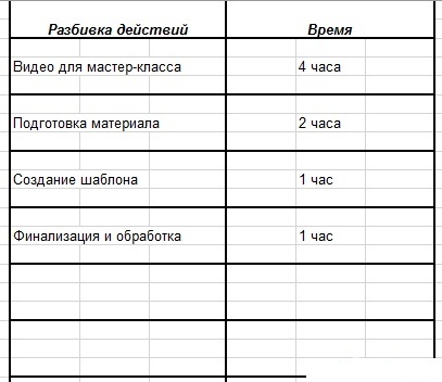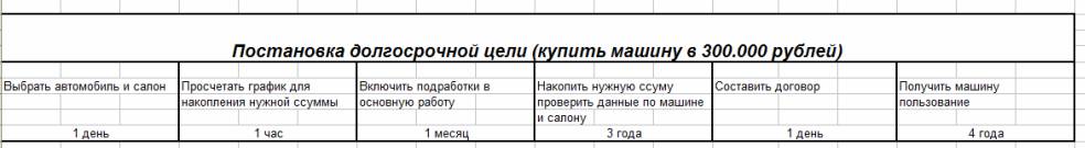 Данные таблички, дают нам виденье того, что нужно сделать для той или иной цели уже по шагам, и сама цель уже так не пугает своей недостижимостью.