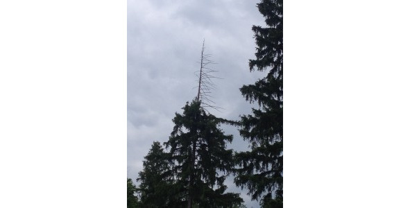 Погодная аномалия в нынешнем сезоне со стойкой прохладой, низкой облачностью и северным сквозняком, создала причудливо комфортные условия для всех, кто имеет листья. На максимуме проявлена интенсивность зеленого в пиковой паузе обновления. Новизна раскрылась, зависнув в свежести и сияет всеми оттенками зеленого. Даже старое засохшее дерево удачно вписано в тотальность цвета, будто надпись на обложке чудного альбома.