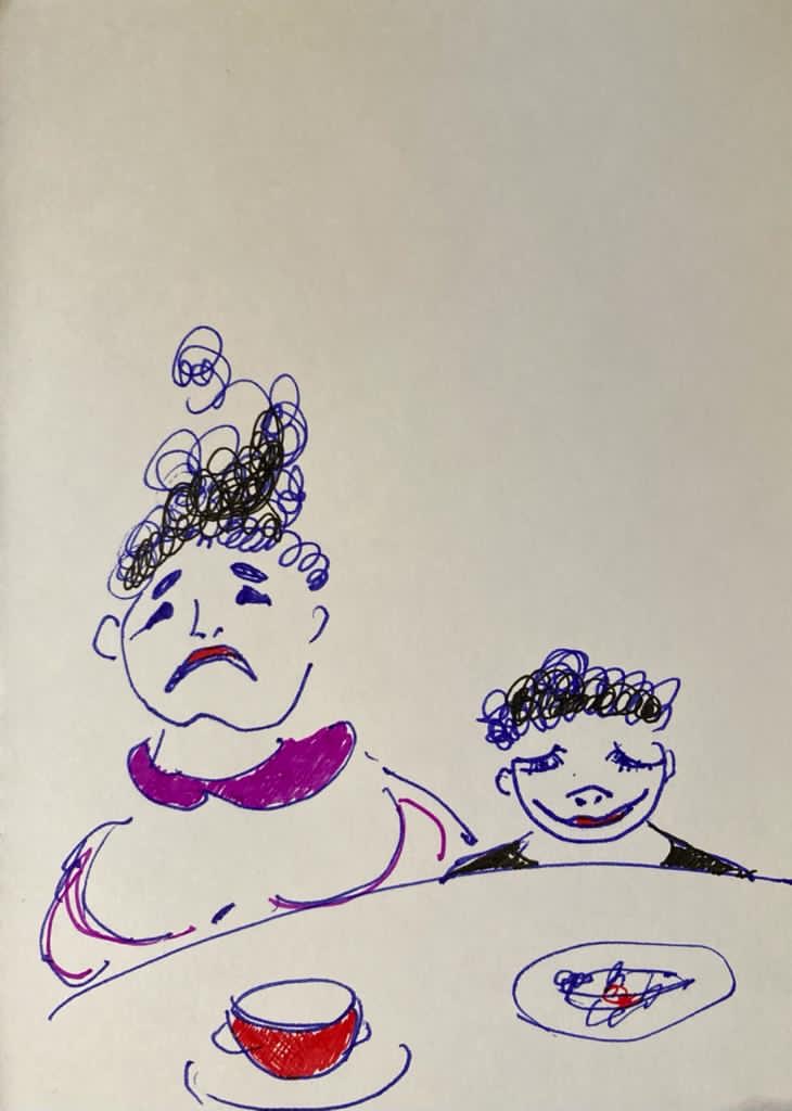 Рядом сидела семья недоволок. Мама Недоволка пилила папу: «Ну вот, а ты говорил, что тут хороший сервис. И стоило сюда ехать, столько денег заплатили. А все ты виноват, ты это затеял, сидели бы себе дома, телевизор смотрели». Хорошо, что папа Недоволка был немного умнее, он понимал, что говорить бесполезно, можно только подраться. Но драться он не хотел, у них и так вчера вечером была отличная драка. Но она продолжала его пилить, наконец всем стало совершенно невыносимо. Степаныч решил вмешаться. Он подошёл к их столику с мягкой, дружелюбной улыбкой на лице, Недоволка примолкла. «Можно мне с вами посидеть? У вас такие милые лица. Как давно вы в этом городе?» Недоволка приняла кокетливый вид: «Три дня, мы приехали из Унынии. Вы не представляете, как я замучилась. Скажите, все мужчины такие противные? Вы только посмотрите на их лица, вечно всем недовольны». «А вы довольны всем?» «Да, я сижу и молчу и лицо у меня доброе, но как же я устала на их лица смотреть». «Извините, мой друг, художник, нарисовал ваш групповой портрет, пока вы разговаривали. Вот он»,– с этими словами портрет был представлен семейству. «Нееет, я совсем не такая. А вот они очень похожи получились. Хи-хи-хи». «Мама, да это вылитая ты, как живая,ха-ха-ха»,– вступил сын Недоволки. «А ну ка, заберите ваш, рисунок, позавтракать не дадут спокойно. «Извините меня, пожалуйста»,– сказал Степаныч и пошёл за свой столик. Недоволка замолчала и как-то задумалась. Было видно, что это было непривычное для неё состояние, завтрак закончился в тишине.
