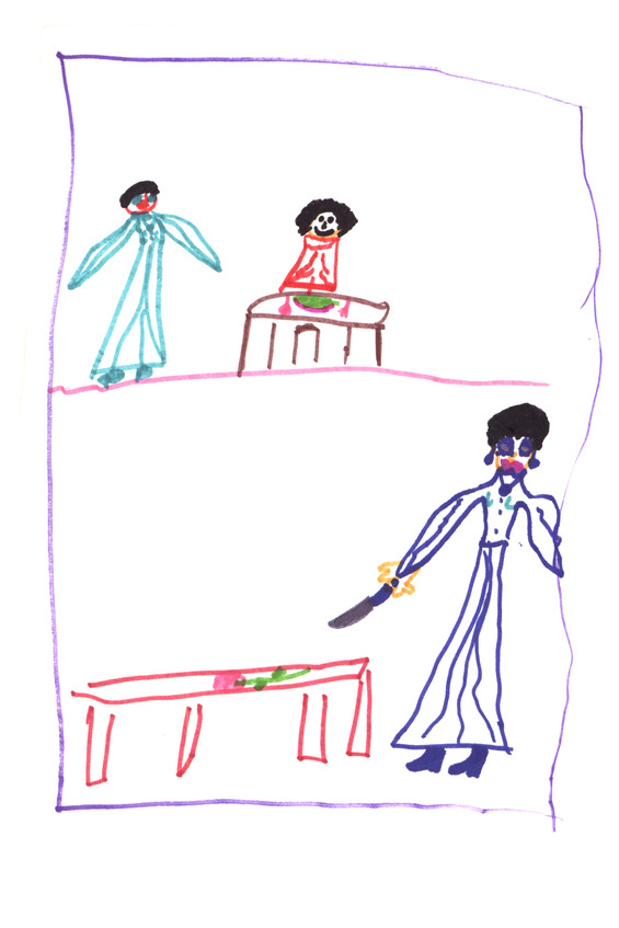 На следующее утро, мать принца пришла на кухню и всех-всех оттуда выгнала. Взяла розу, оторвала ей листья и ствол, перемешала с салатом и приказала подать это к столу.