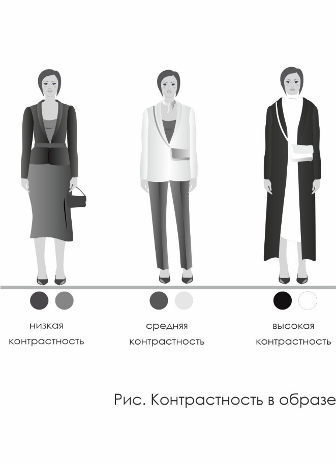 Низкая контрастность указывает на необходимость использовать при выборе одежды слабые контрасты. Высокая – четкие цветовые пятна и сильные контрасты. Средняя соответственно – среднюю насыщенность цвета и контрастность в образе.