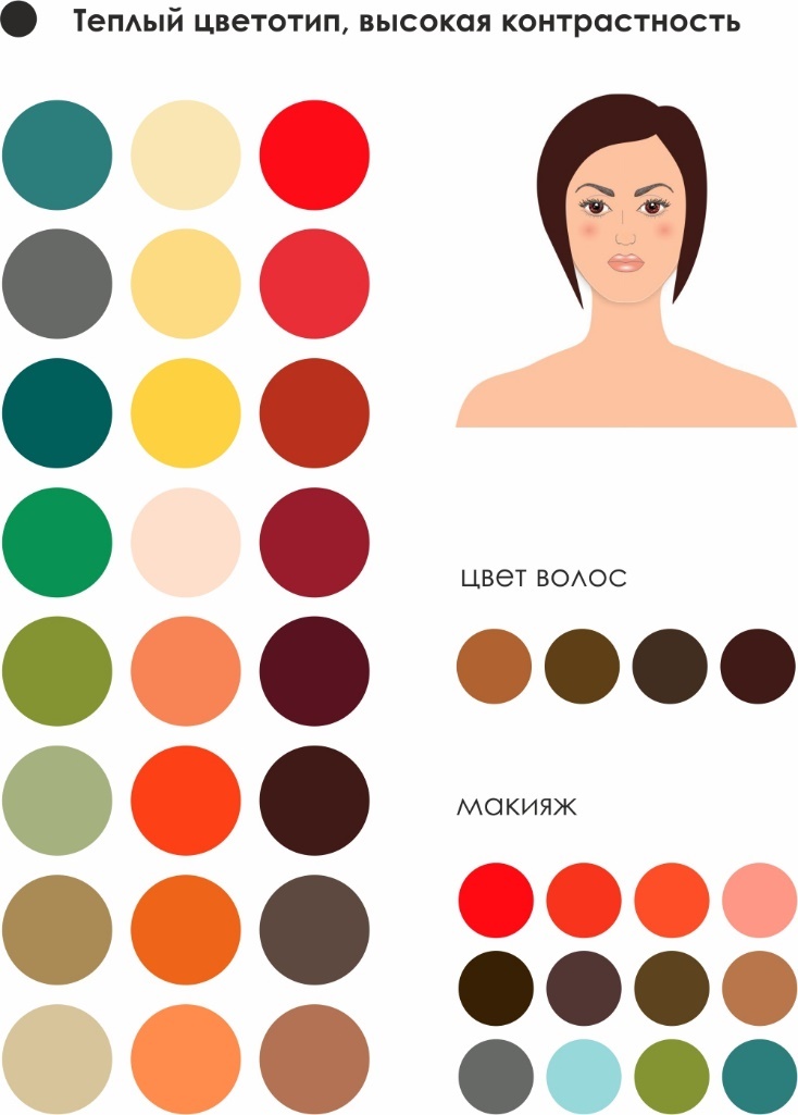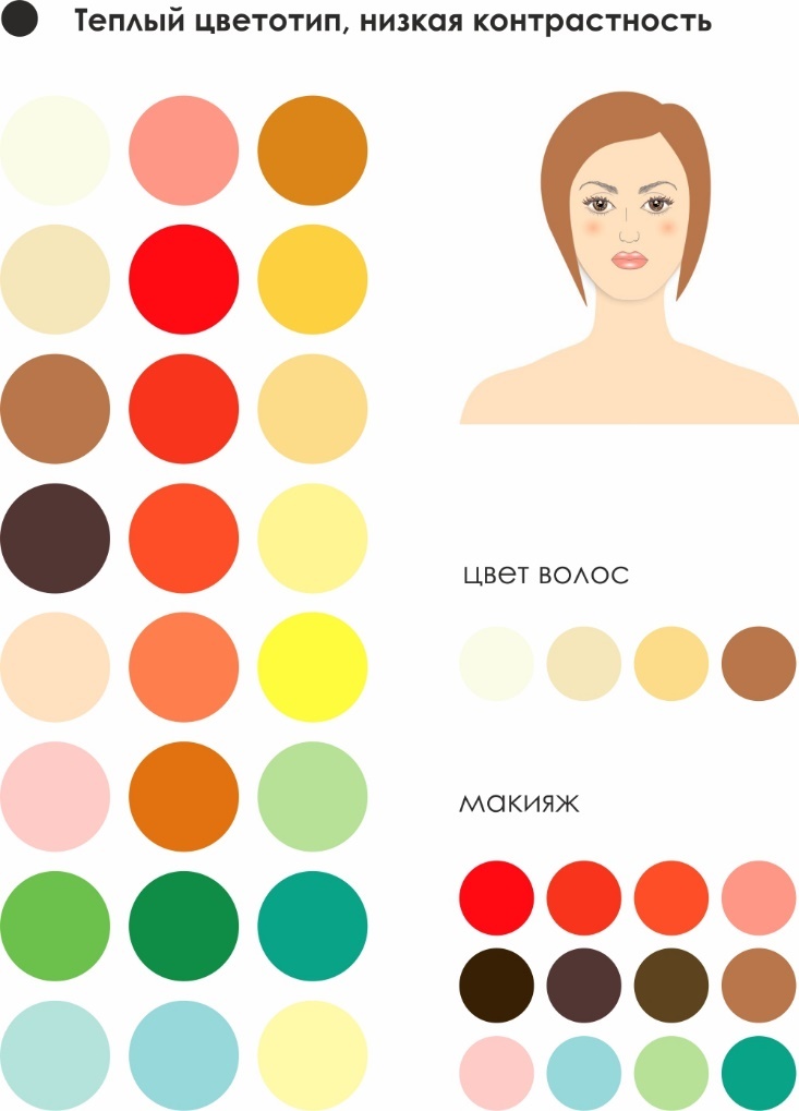 Далее указаны идеальные цвета для каждого типа природной внешности, цвета макияжа и цвета волос. Все эти цвета подчеркнут ваши природные данные.