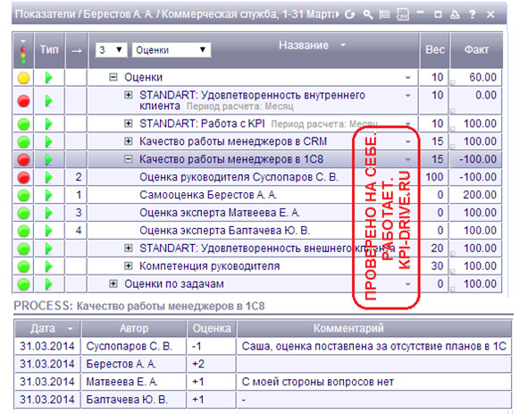 Хотя здравый смысл вроде бы подсказывает, что людям всё это можно объяснить на словах. Но! Им говорили не раз, и не два, и не три. Однако никакого результата не было. И что нам было делать? Вот мы и пошли таким путем: завели данную оценку. И люди сразу поняли, что им никуда не деться с подводной лодки.