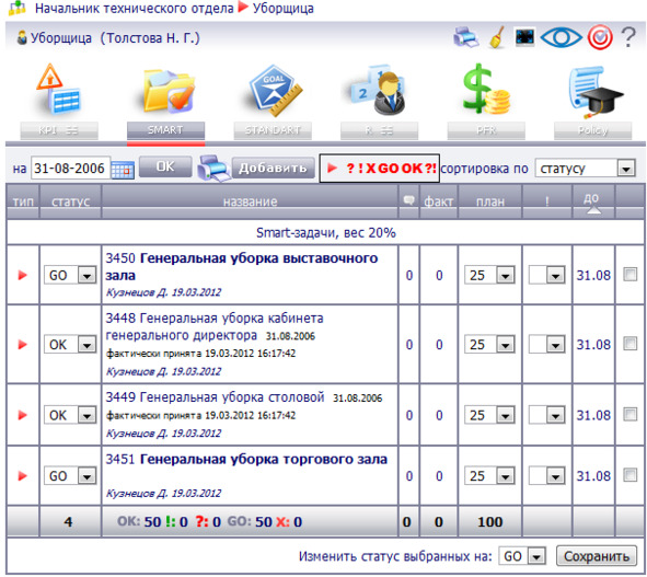 У нас сейчас ведется 94 человека в АС GOAL (2006 год). Разгар сезона. В этом списке есть все, абсолютно. Ради хохмы, могу показать Smart-задачи уборщицы (илл. 2).