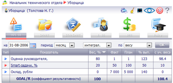 Илл. 3. KPI-матрица. Оценка результата труда уборщицы