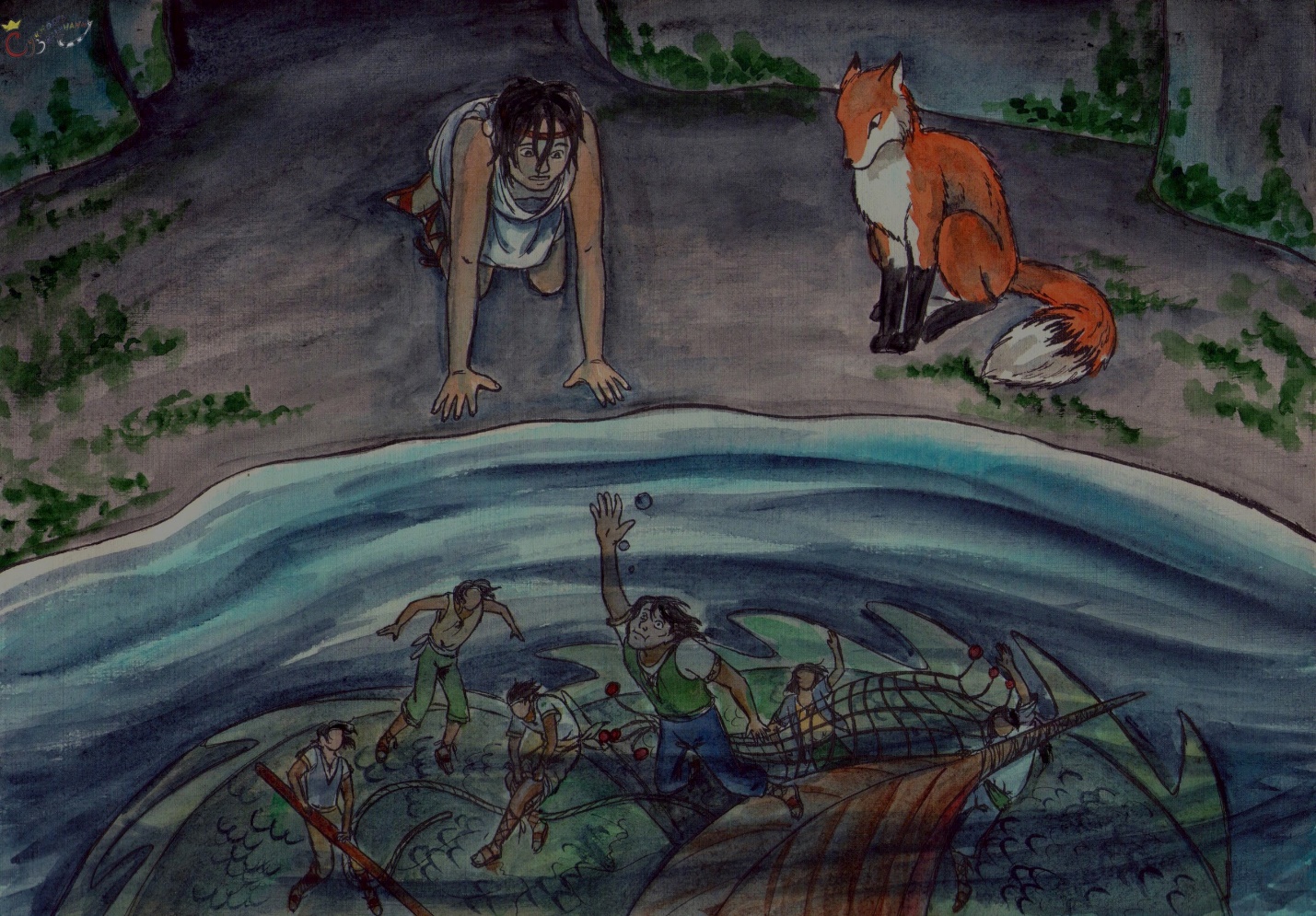 Отставив чашку, она зашагала вглубь пещеры, туда, где ранее спрятался лис. Денрик последовал за ней. За широким каменным выступом открылось ему небольшое озеро, с чистой, словно подсвеченной со дна водой, на удивление неподвижной. На берегу озера лежал лис и смотрел на то, что скрывалось под водной гладью. Мальчик тоже присмотрелся и обмер: там внизу замерли знакомые ему люди. Ближе всех к границе водной и воздушной стихии был его брат. Он протягивал руку, надеясь вырваться из плена, но времени ему явно не хватило. Чуть ниже замерли в похожих позах и остальные члены команды. Лица их были бледными, безжизненными. Еще глубже видна была деревянная палуба их бота и часть порванного малого паруса. А еще ниже… медленно двигалось и блестело в неестественном свете что-то огромное и чешуйчатое.