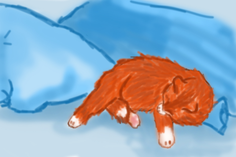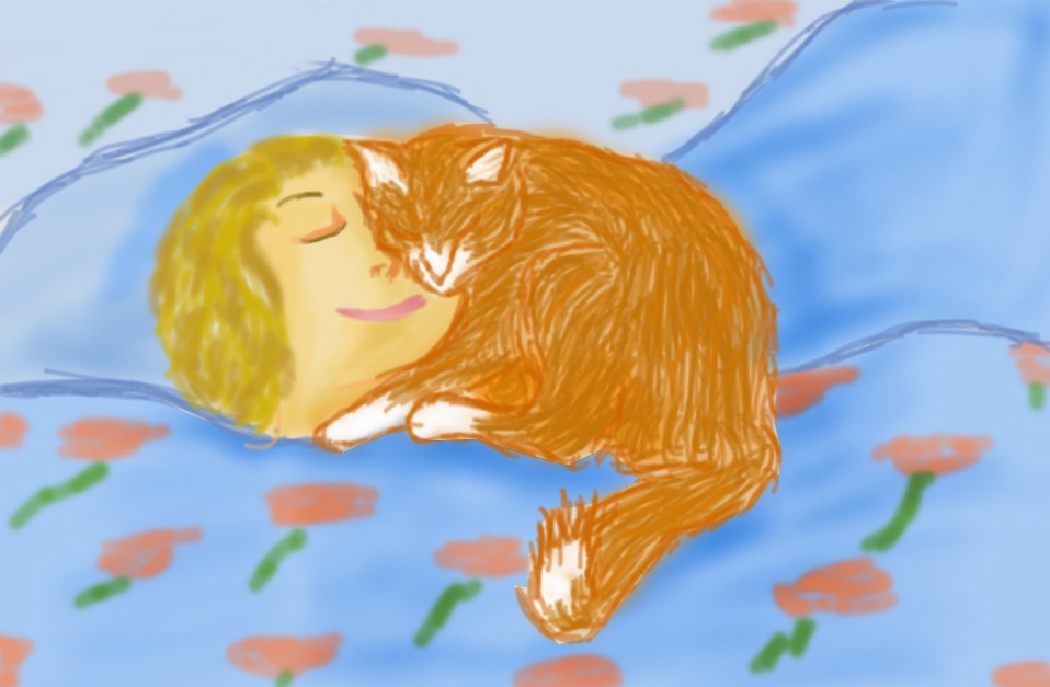 Котик на кроватке дремал.