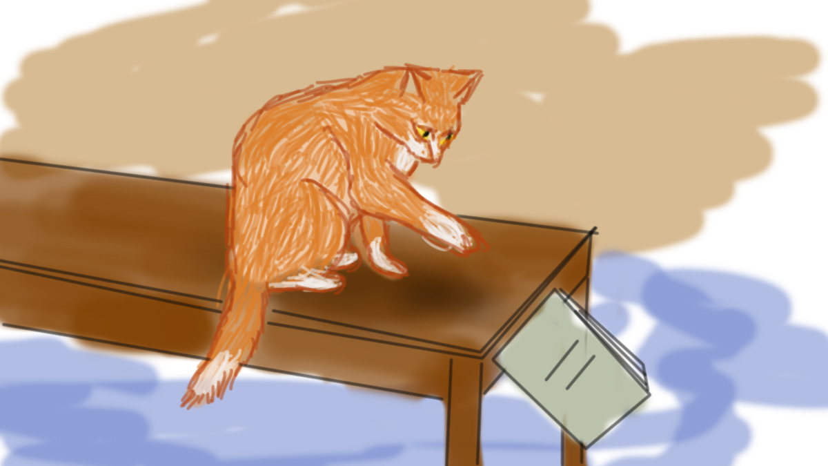 Лапой миску опрокинул,