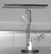 Для качественного определения наличия электрического заряда на предмете служит электроскоп (рисунок 6а). Он состоит из металлического шарика соединенного с металлическим стержнем. На другом конце металлического стержня прикреплены две одинаковые полоски бумаги. Для того чтобы исключить внешнее влияние, например, колебания воздуха, вся конструкция через токоизолирующее кольцо помещена в стеклянную банку. При сообщении шарику электроскопа заряда от какого-либо предмета происходит заряжение бумажных полосок (рисунок 6б). Так как они заряжаются одинаковыми по знаку зарядом, то они расходятся на некоторый угол. Чем больше угол отклонения бумажных полосок, тем больший заряд был передан структуроскопу.