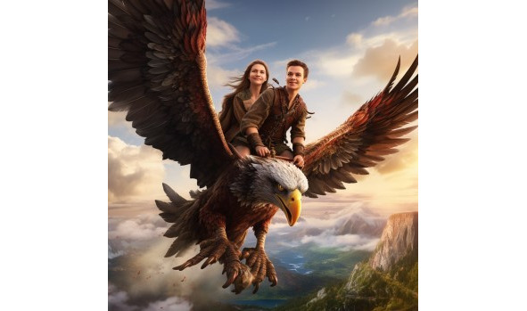 Сели Иван и Василиса орлице на спину. Поднялась она в небо и отнесла их в небольшой грот на скале.