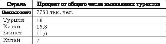 Большинство российских туристов по-прежнему отдает предпочтение недорогому отдыху в странах с благоприятным теплым климатом, поскольку вопрос экономии для них является существенным. В таблице 3 приведены направления, наиболее популярные среди российских туристов. Немаловажное значение для развития экономики и туристической сферы имеет внутренний туризм.