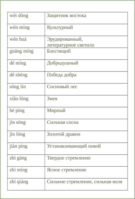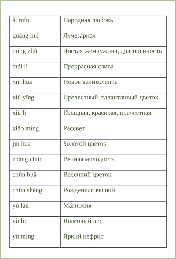 Ниже даны примеры популярных китайских женских и мужских имен.