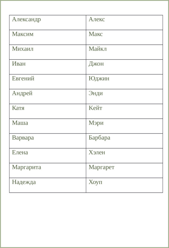 С английскими именами немного проще, можно посмотреть соответствие английских имен и русских. Вот примеры нескольких их них: