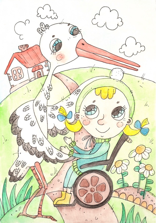 Светланка помахала аистам рукой. Девочка развернула своё креслице на садовой дорожке. Она решила вернуться домой.