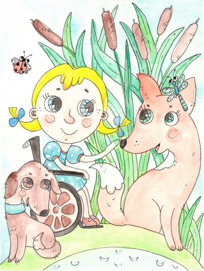 – Как-то утром я прибежала сюда, чтобы полюбоваться на свою пушистую шубку в зеркале этого пруда, – начала рассказ лисичка Оленька. – И вдруг вижу: из воды на лист кувшинки вылезает какое-то маленькое чудовище. Я даже испугалась немного. Маленькое чудовище посидело на кувшинке, обсохло. А потом шкурка на его спинке лопнула, и из неё вышла красивая голубая стрекоза. Она расправила свои крылышки, и мы познакомились. Но не успели мы даже и двух минут поговорить, как вдруг замечаю, что за моей новой подружкой охотится синица. Я еле-еле успела защитить красавицу Стрелку.