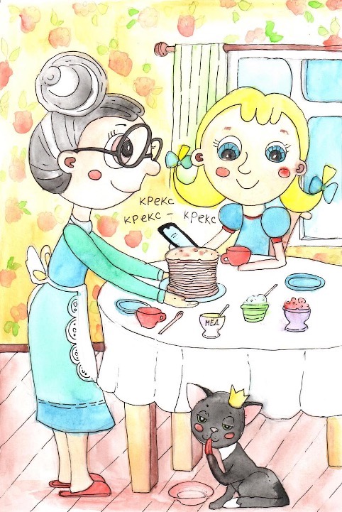 А на кухне бабушка печёт блины. Румяные, душистые, аппетитные.