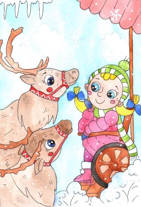 – Здравствуйте, дорогие олени, – чуть слышно поздоровалась девочка. Она всё ещё не до конца верила, что встретилась с настоящими оленями.