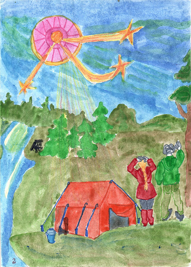 – Это то самое НЛО, что висело над палаткой. Упало оно, что ли? – Удивлённо прошептала Настя.