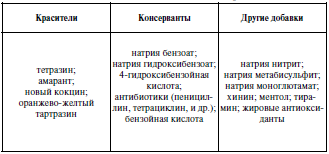 Таблица 8. Пищевые добавки, вызывающие крапивницу
