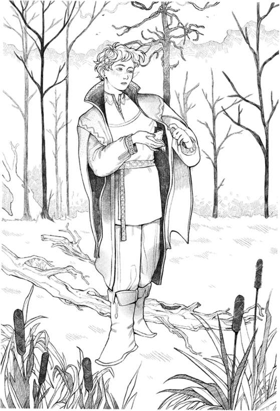 Только стих треск, слетел с веток снежный пух, как встал на том берегу, раздвинув ели, Кощей. Но поздно: не властен был владыка Тени над болотным берегом, не мог шагнуть в Солонь. Тёмным тяжёлым взглядом проводил царевича, проследил путь до самой опушки. И дальше бы проследил, но у реки царевич ступил в яблоневую рощу, а та хранила память о летнем дне, давнем, красном – горячую память хранила, золотую, солнечную. Кощей обжёгся, потерял след. Качнулась игла в груди, и тьма наступила.
