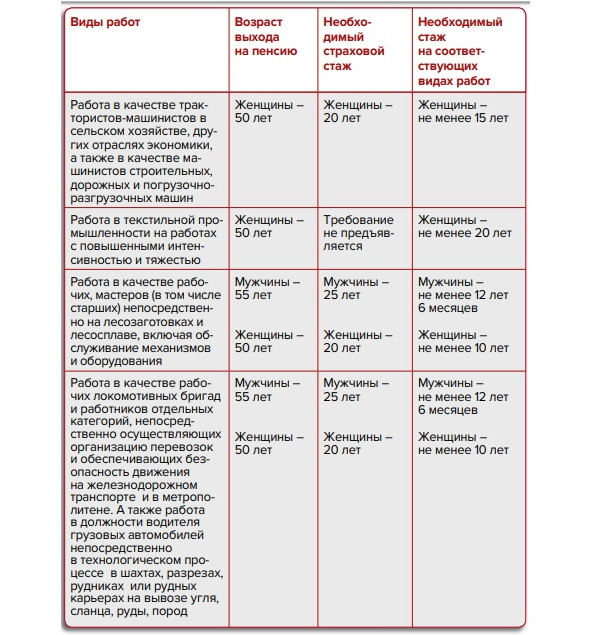 тяжелыми условиями труда, занятость в которых дает право на пенсию по возрасту (по