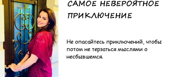 Жизнь – это приключение, которое не заканчивается, если конечно, вы позволяете себе мечтать и делать всё, чтобы ваши мечты обязательно сбывались.