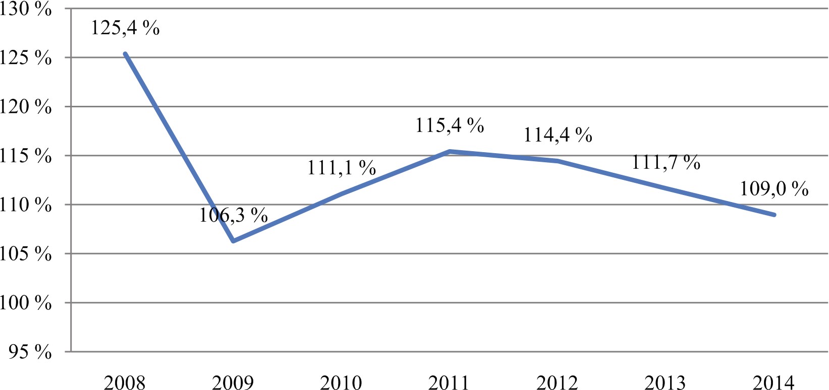 Рис. 4. Динамика изменения объемов конечного потребления в использовании ВВП России в 2008–2014 гг.9