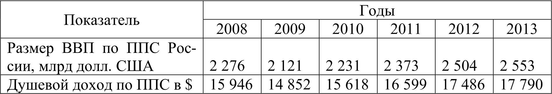 Динамика изменения душевого дохода населения по паритету покупательной способности в 2008–2013 гг.