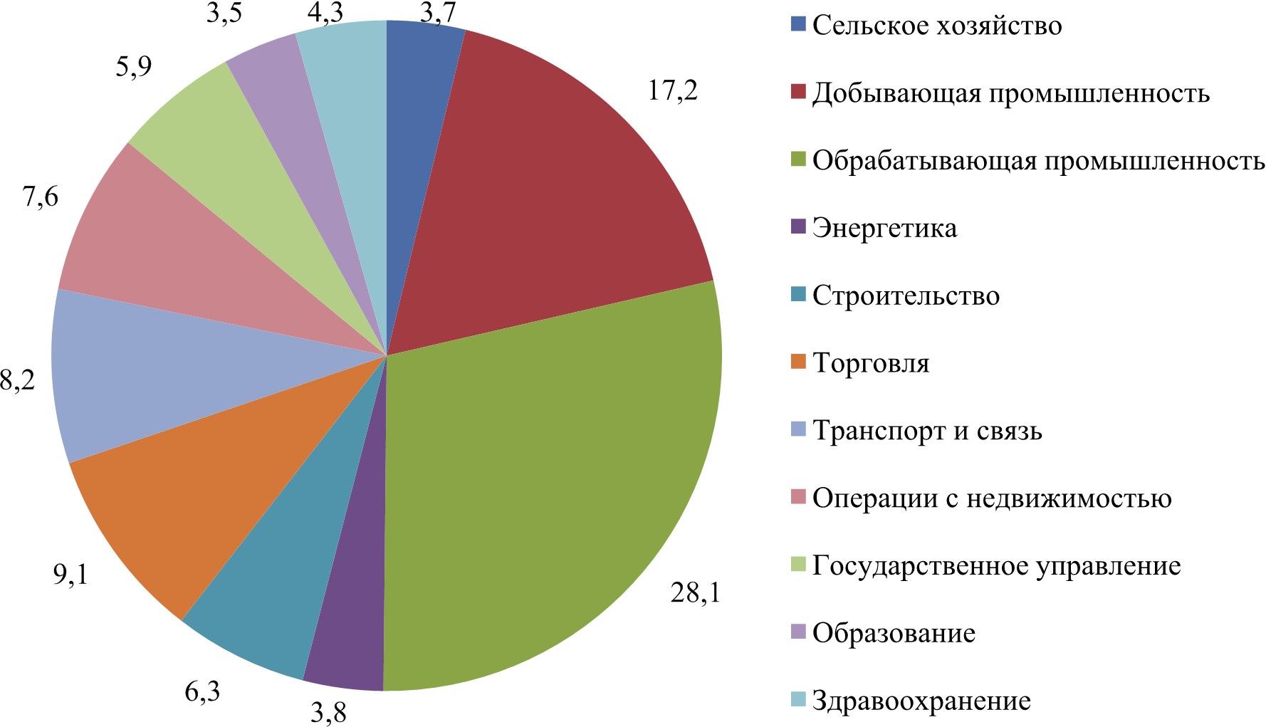 Рис. 6. Структура ВРП Красноярского края в 2013 г. по видам экономической деятельности, %