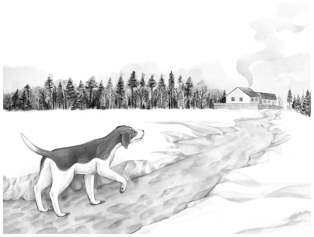 Едва дверь открылась, Орган припустился бегом по накатанной машинами дороге, которая шла вдоль деревни. Но вскоре дорога кончилась. Бежать стало сложнее. Лапы вязли в снегу. Иногда Орган останавливался, водил носом, настораживался, пытаясь уловить звуки. Он боялся, что голос исчезнет, замолчит и больше не позовёт, поэтому продолжал бежать.