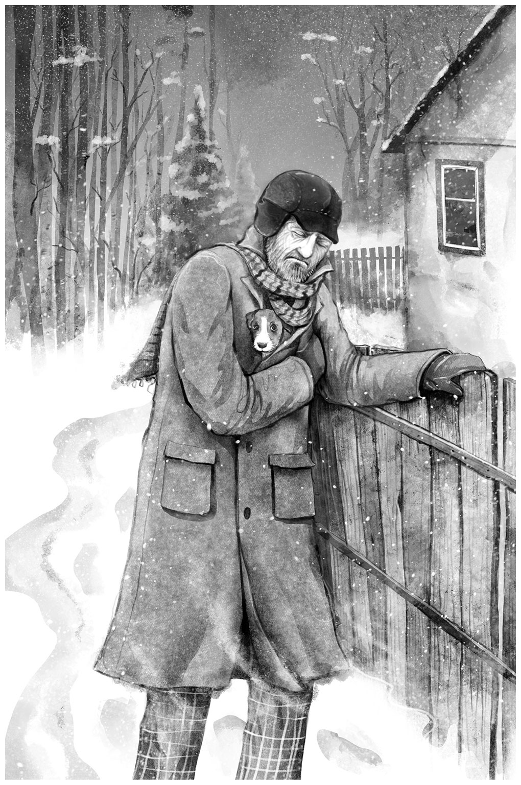 Пёс внимательно слушал, склонив голову набок. Пообедав, Николай надел чёрную кожаную кепку с расправленными «ушами» и накинул серое пальто. Щенка сунул за пазуху, чтобы не замёрз. Но пройдя несколько домов, Николай вдруг задохнулся. Руки снова стали неметь, а перед глазами всё задвоилось.