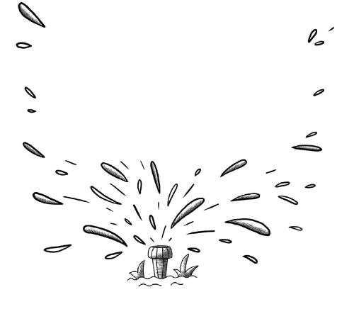 Это сработал автополив. Питер рванул с места. Струйки воды хлестали его по спине, оставляя мокрые иероглифы на майке.