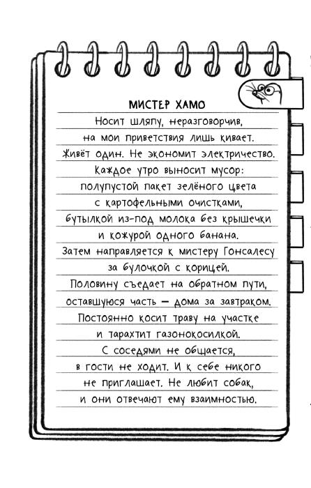 – Вот мои наблюдения, – мальчик достал записную книжку из заднего кармана шорт, провёл ладонью по магнитным закладкам и открыл страницу с изображением крота. Почему-то сосед ассоциировался у Питера именно с этим животным. Такие же маленькие глазки за очками, нежелание покидать дом и нелюдимость.