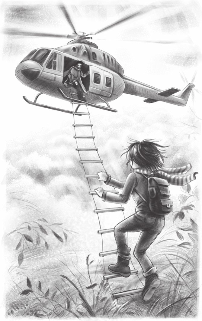 – Прости, пап. Я обязательно буду тебе звонить. – Закусив губу, Эля спрыгнула вниз. Вертолёт поднялся выше и так и полетел с болтающейся на ветру лестницей.