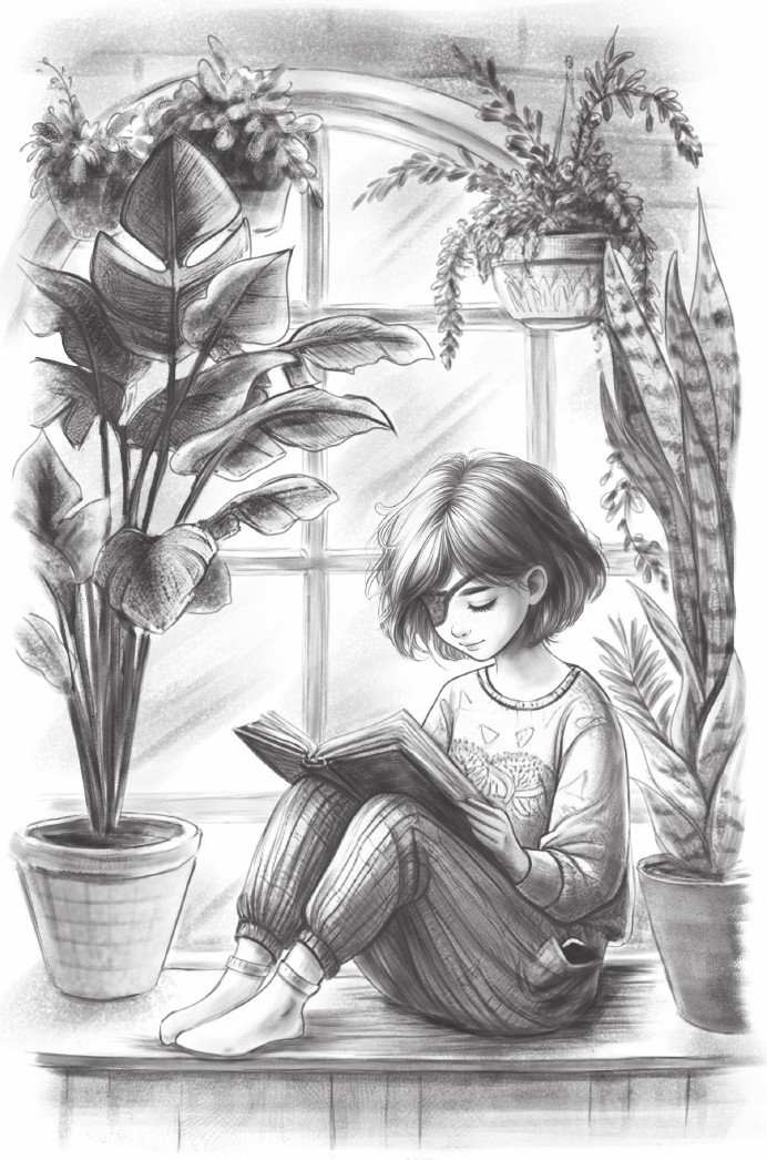 Дождавшись, когда лак на ногтях высохнет, Эля накрыла Матильду пледом и вышла в зимний сад. Вдоволь напоив растения из лейки, она встала у окна и увидела на подоконнике книгу сказок. Опять? Эля заметила, что книга всё время попадалась ей на глаза, точнее на глаз, где бы она ни оказалась.