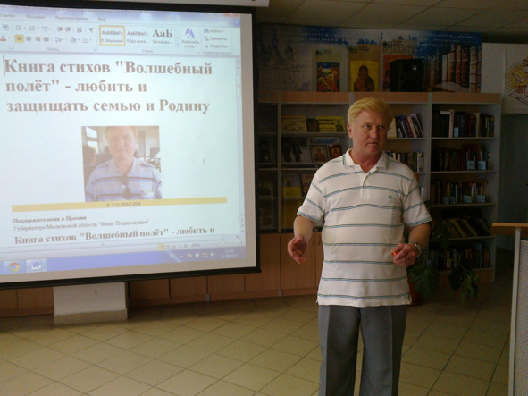 Презентация книги стихов «Волшебный полёт» на премию Губернатора Московской области «Наше Подмосковье-2017» в Общественной палате Дмитровского муниципального района. Книга получила высокую оценку экспертной комиссии. Здание Дмитровской межрайонной библиотеки. 21 августа 2017 г. г. Дмитров.
