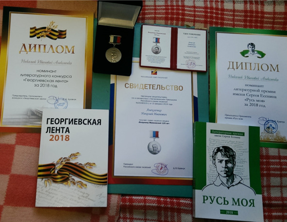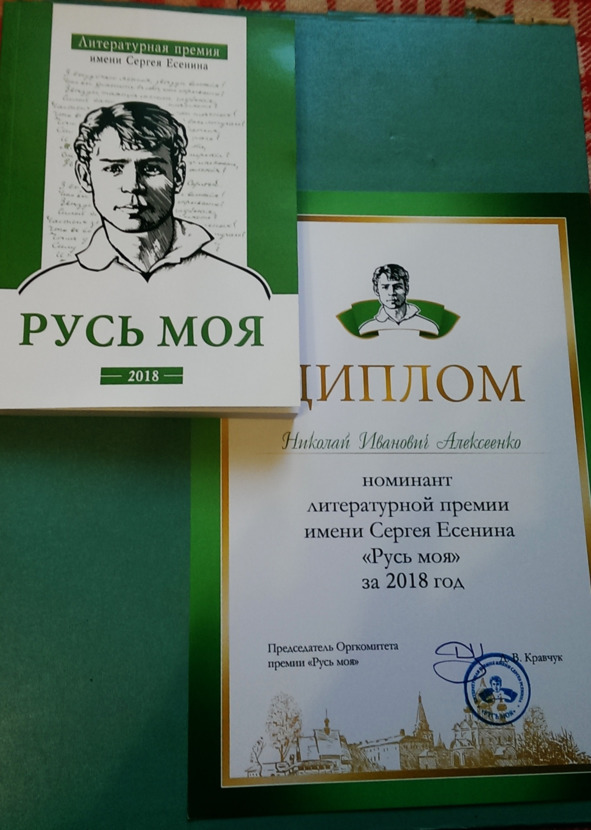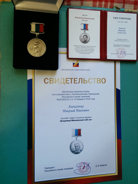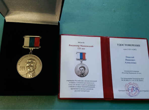 За этот период Российским Союзом писателей Н. И. Алексеенко награждён медалью «Владимир Маяковский 125 лет», он стал номинантом трёх всероссийских конкурсов.