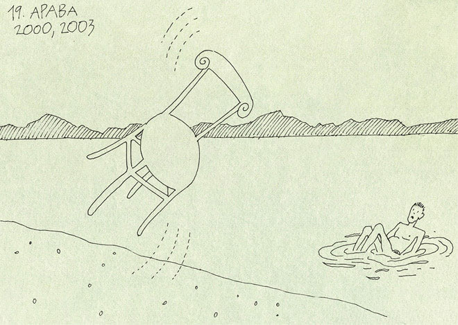 Наш автобус обогнал джип с солдатами: как они, в бронежилетах, с раскаленными автоматами, могут это выдержать? Мы с Даней Филипповым вышли из кондиционированного автобуса на берег Мертвого моря. Это был ветер? Наверно. Но больше было похоже на удар по голове подушкой, раскаленной на сковороде. Волны горячего воздуха гоняли по берегу пластмассовые стулья. Те, что унесло в воду, болтались на поверхности вверх ножками. Мы полезли купаться в желеобразную воду, и я, как все до меня, почувствовал себя совершенно по-идиотски.
