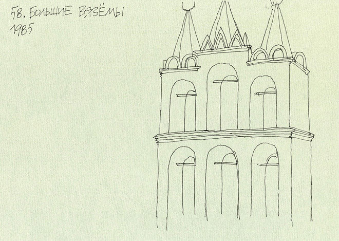 Отец недавно разошелся с мамой и пытался как-то выйти из положения. Иногда у него это получалось хорошо. Например, он повез меня в Ростов Великий. Мы залезли в брюхатый икарус (гениальное изделие, почти такие же придуманы Энки Билалем в его комиксах) и отправились на север. Проехали Петровское – там удивительная ампирная колокольня дурной архитектуры, но стоит она так, что ее нельзя забыть. Это шприц, воткнутый в бессмыслицу неба. Вокруг метались вороны, пытались что-то объяснить.